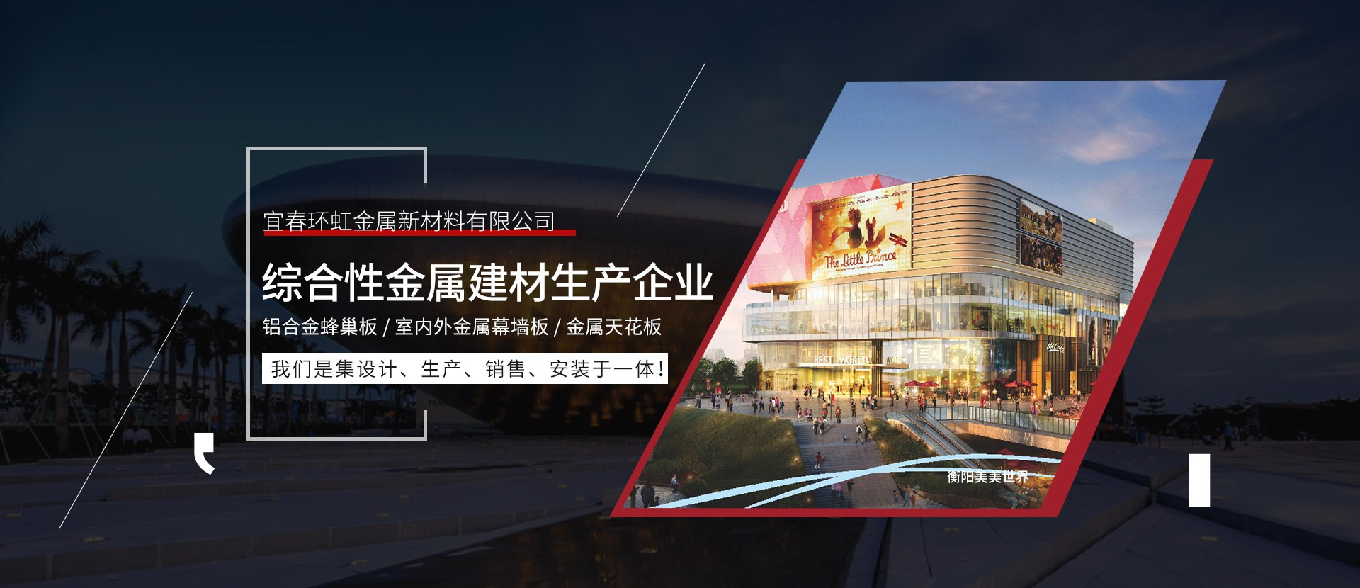 宜春環(huán)虹金屬新材料有限公司總部位于廣東省佛山市創(chuàng)立于2011年。公司建設(shè)有高標(biāo)準(zhǔn)的現(xiàn)代化工業(yè)生產(chǎn)廠房及完備的生活配套設(shè)施,是一家生產(chǎn)鋁單板、鋁合金蜂窩板、室內(nèi)外金屬幕墻板、金屬天花板等新型建筑裝飾材料的現(xiàn)代化企業(yè)。從產(chǎn)品設(shè)計到生產(chǎn)檢驗、施工安裝及服務(wù)都嚴(yán)格按照ISO09001和ISO14001 2015質(zhì)量與環(huán)境保證體系實行嚴(yán)格的控制和管理,并著力為客戶提供優(yōu)良的個性化服務(wù)和相關(guān)解決方案。公司擁有一批高素質(zhì)、高水平的...